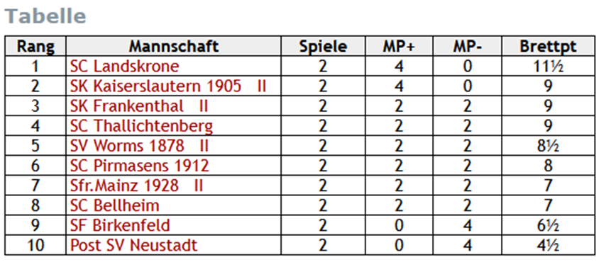 Mit diesem Kantersieg führen wir nach der zweiten Runde sogar die Tabelle der 2. Rheinland-Pfalz-Liga Süd an:
